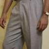 VINTAGE – CUT DOUBLE PLEATED LINEN TROUSERS – Light Grey