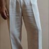 VINTAGE – CUT DOUBLE PLEATED LINEN TROUSERS – White